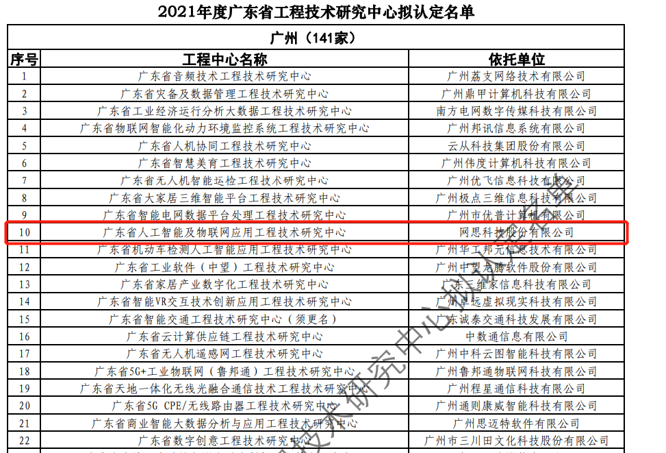 日前,广东省科技厅发布2021年度广东省工程技术研究中心名单。经过层层筛选、专家评审,依托爱体育体彩-爱体育(中国),建设的“广东省人工智能及物联网应用工程技术研究中心”榜上有名。广东省工程技术研究中心主要依托省内行业、领域具有科技实力的、拥有一定规模以上创新型企业建设,部分依托高校和科研院所组建。工程中心旨在